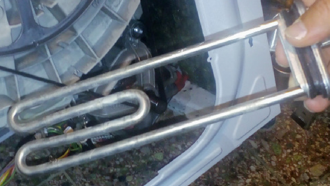 Riscaldatore della lavatrice dopo 3 anni di utilizzo di Eco Water G1 al punto di ingresso dell'acqua in una casa monofamiliare.