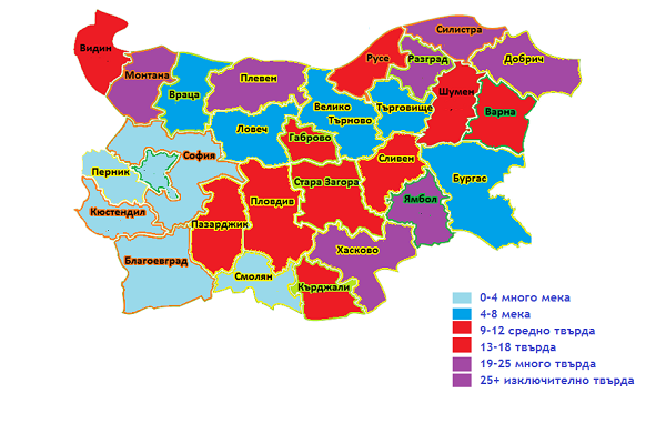 | Много мека вода | 0 до 4 | 0 до 0,72 |
